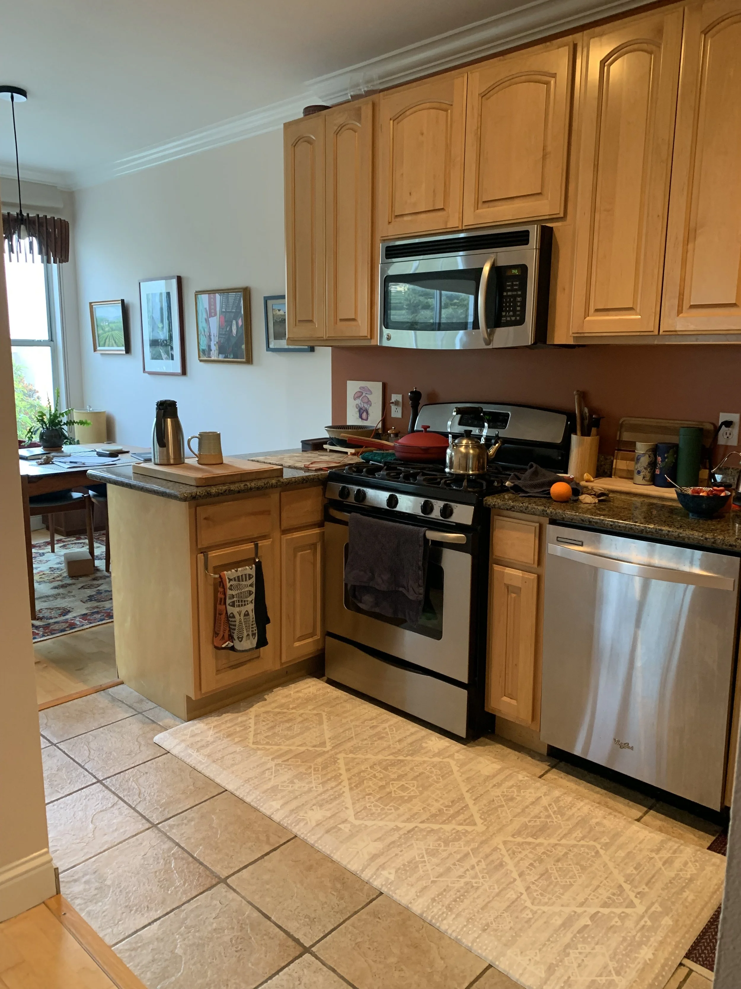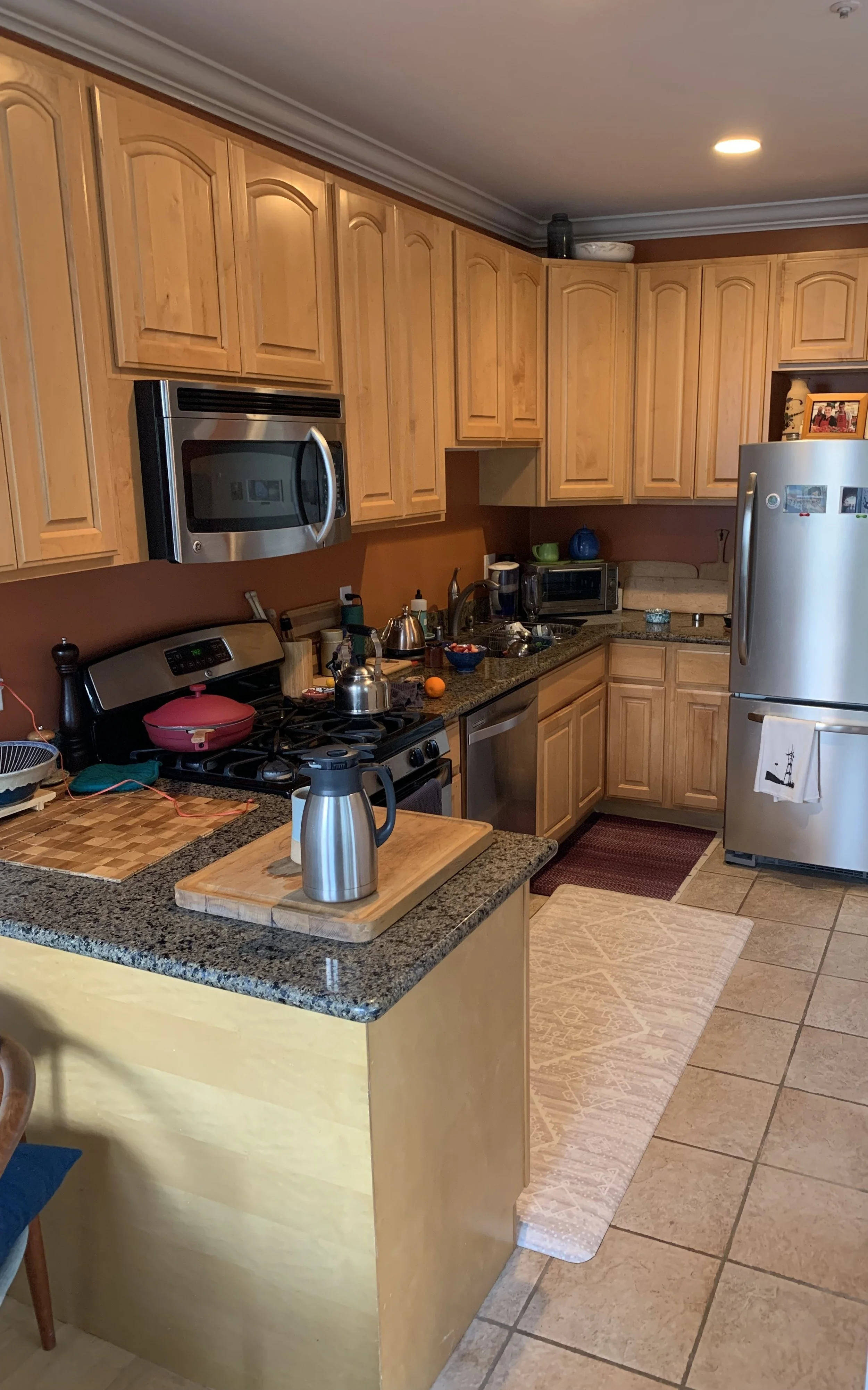 The dishwasher was broken, and the refrigerator was oversized for the space, disrupting circulation and flow.