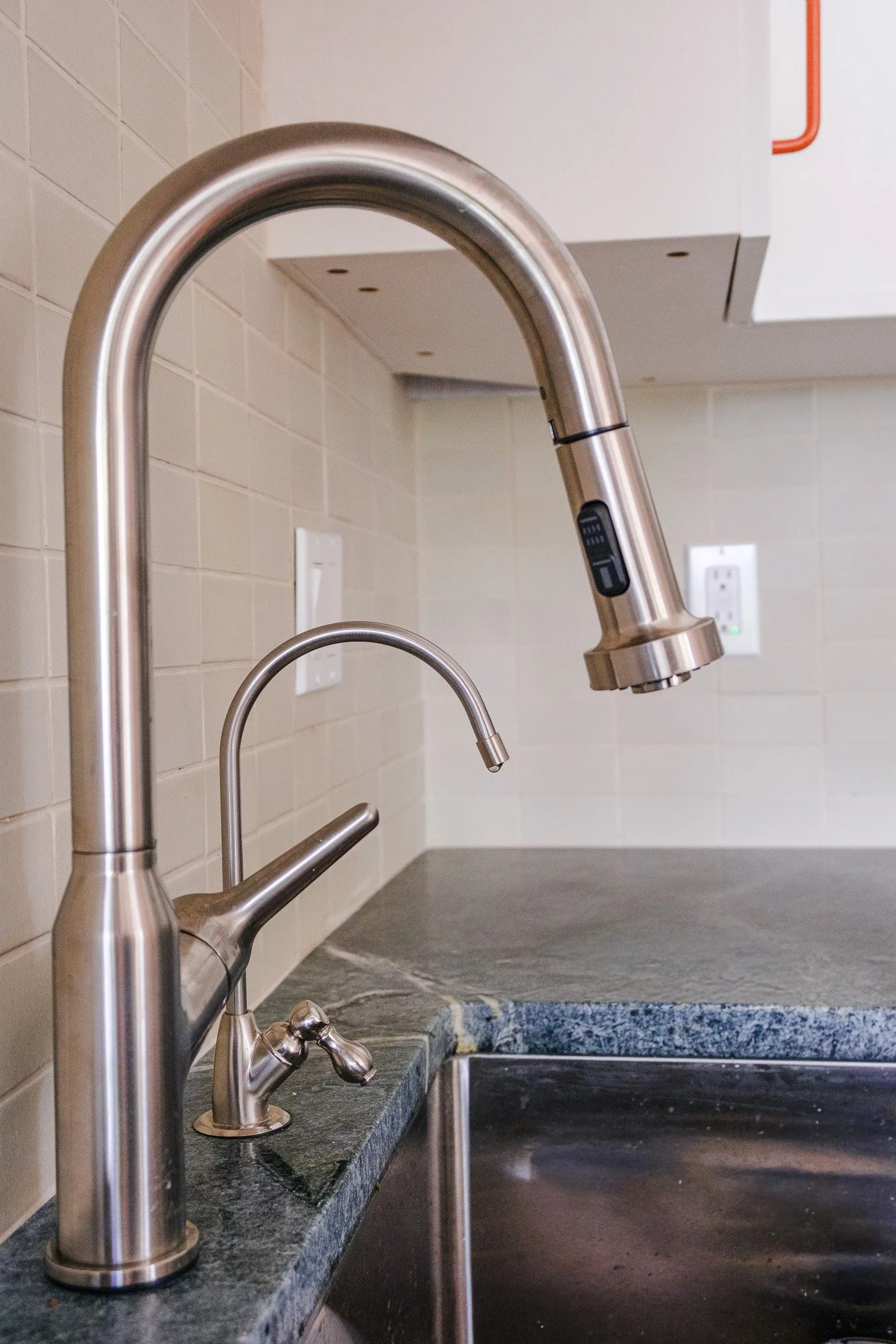 Brushed nickel fixtures and a new reverse osmosis filtration system for cleaner, better-tasting water